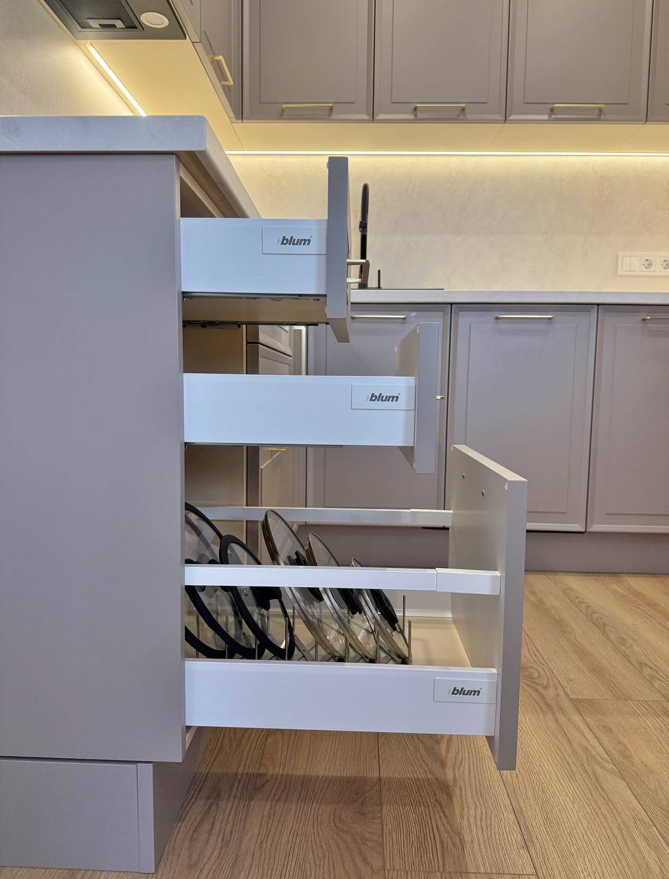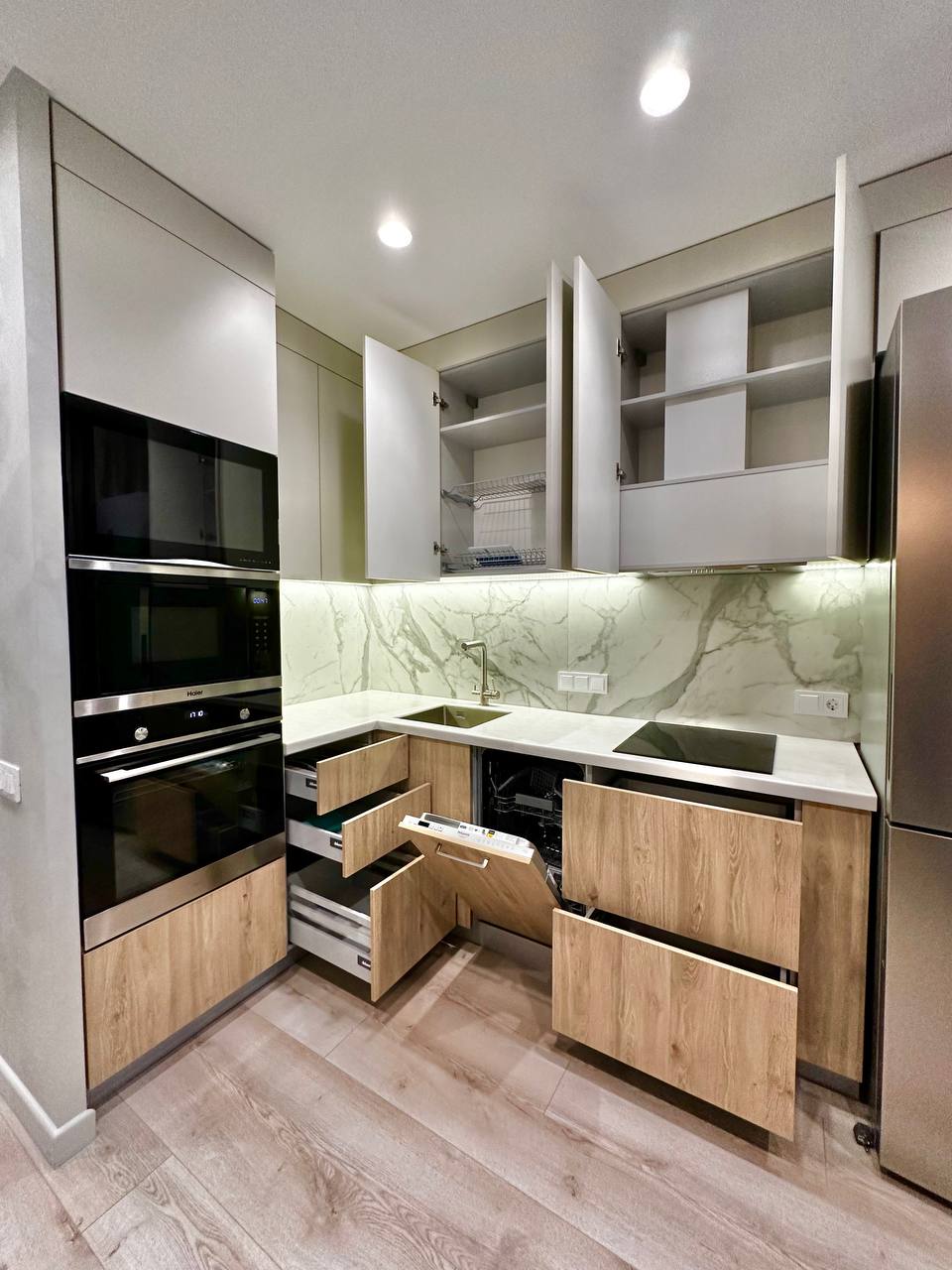 ▪️Интегрированная техника: Вся техника гармонично вписана в гарнитур, не нарушая единый стиль. Это не только красиво, но и удобно в использовании.