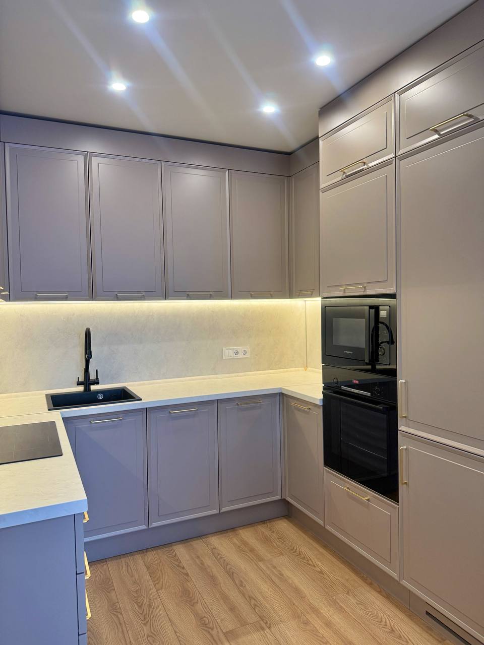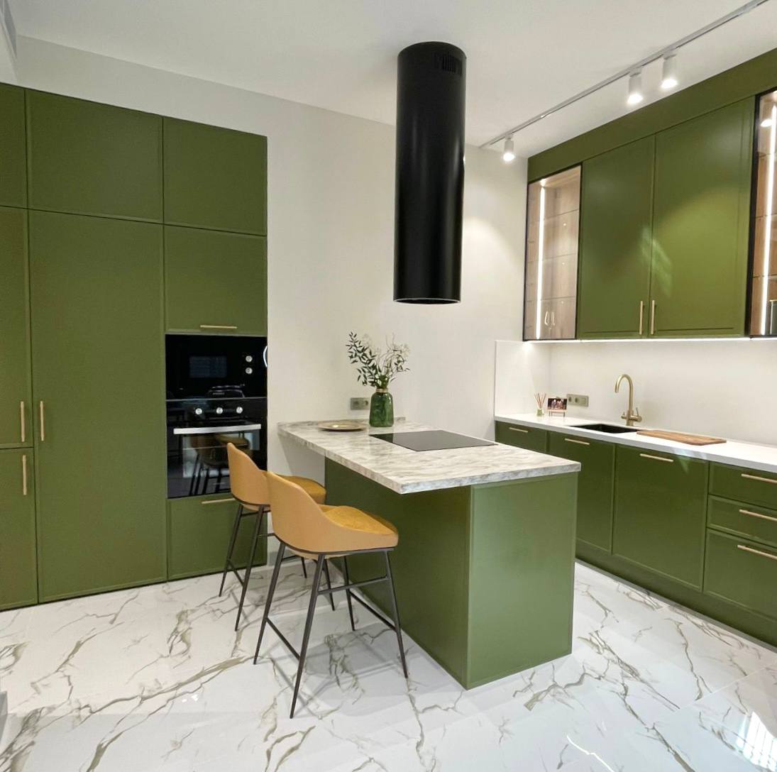 • Нежный, глубокий оттенок фасадов, который создает атмосферу спокойствия и элегантности.