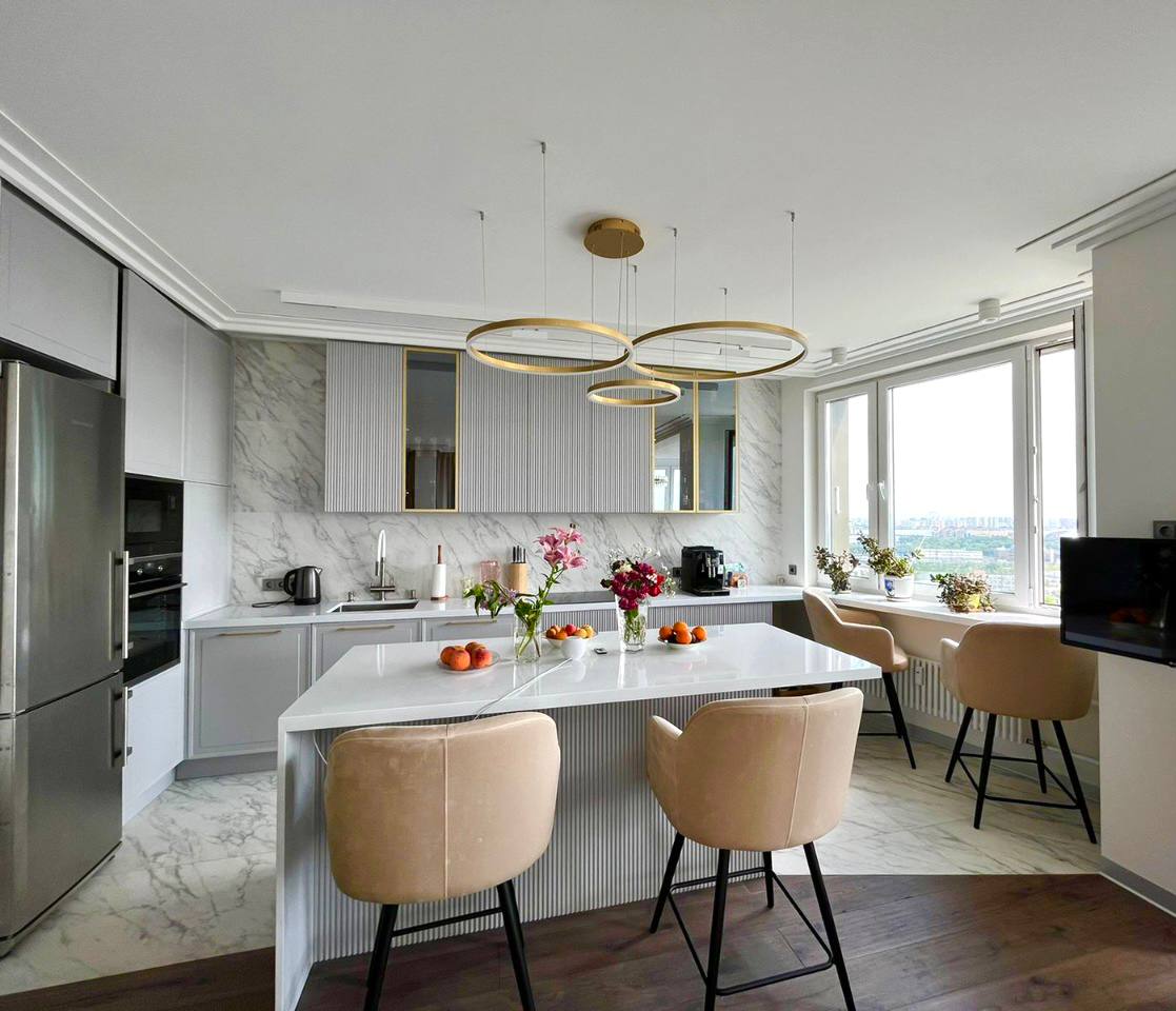 Мы убеждены, что красота и практичность должны идти рука об руку. Эта кухня — идеальное тому подтверждение!